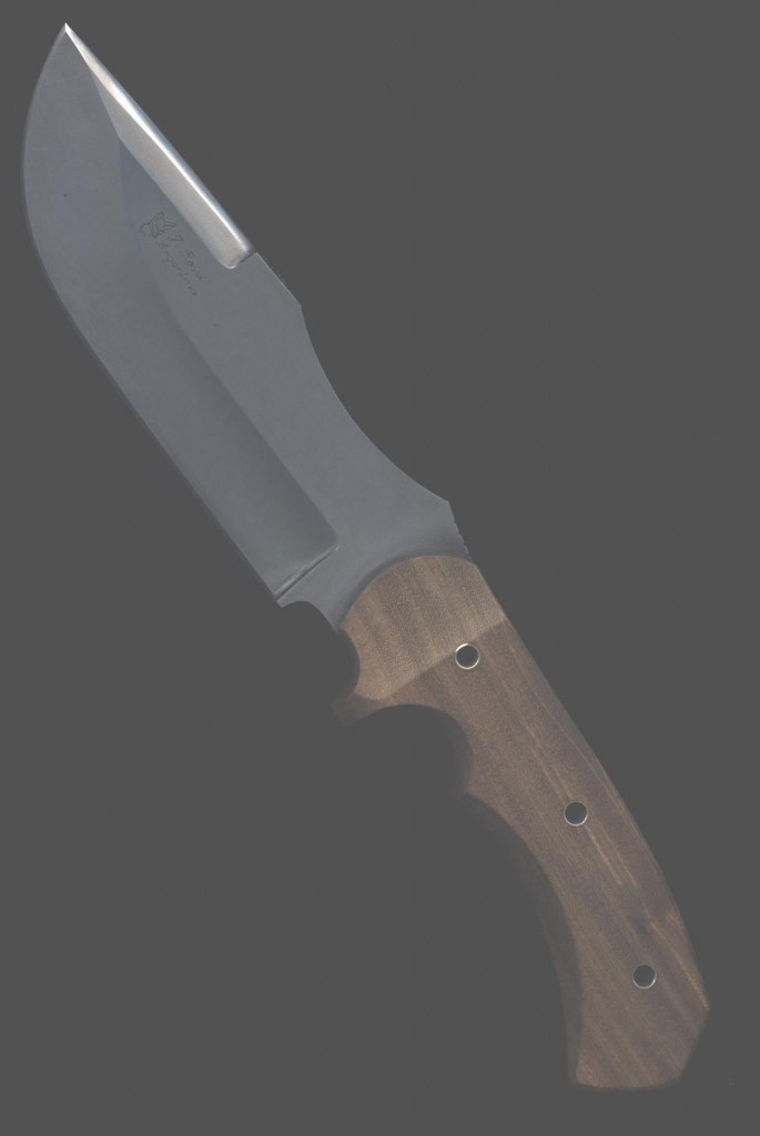 Diseñado específicamente para un amigo de la Patagonia Argentina. Robusto, bien equilibrado, con buen peso para hachar, una «panza» marcada para cuerear y tronzar, y contrafilo que, además de ayudar a la hora de clavar, es muy útil para romper huesos grandes y duros.